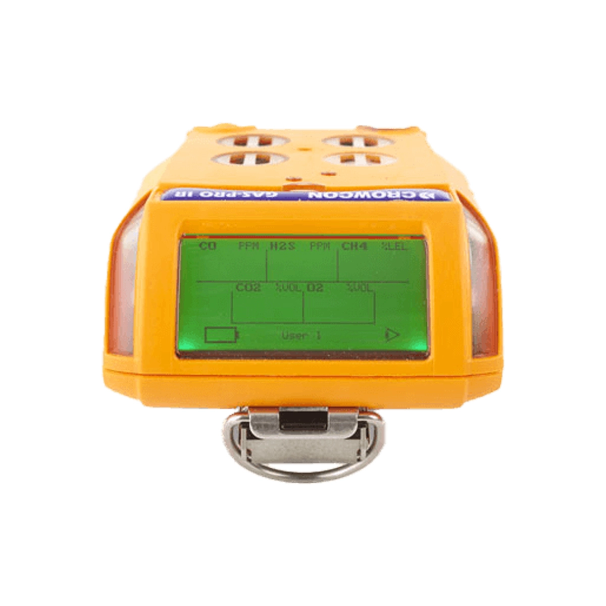 A single-button interface controls all key functions, supporting straightforward use while wearing gloves or other PPE. The top-mounted display ensures gas readings remain visible when the detector is clipped to clothing or a harness, improving situational awareness without needing to unclip the instrument.